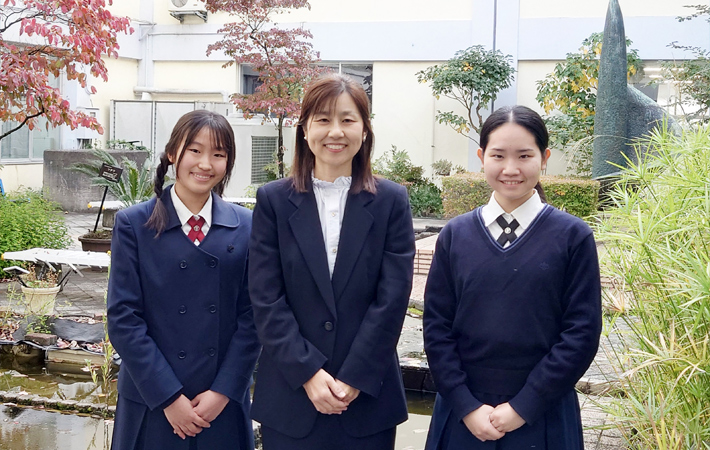50年以上も前に定期試験を廃止し、通知表はない。とはいえ、成績はきちんと示される。評価記号だけではなく、各教科の先生方からのコメントをもとに担任の先生が面談で伝達する。これが、同校の評価スタイルです。「Learning by doing(為すことによって学ぶ)」という教育哲学の下、教育目標を「結果ではなくプロセスを大切にする」「ことばの力を創造力に」とし、「論理的思考力」「発想力」「表現力」を涵養する同校。だからでしょう、この教育環境で過ごした卒業生たちには、桐朋女子での経験が「自分の基準」になっているため、大学でも社会に出てからも、周囲を巻き込みながら逞しく道を切り開いている人が多いのです。同校は、多様な資質に出会うためにさまざまな入試を設けていますが、その一つが英語1科型の「Creative English(以下、CE)入試」です。このCE入試と桐朋女子での学校生活について、中3のT.M.さんと高2のN.S.さん、そして外国語科の山本ちひろ先生に伺いました。