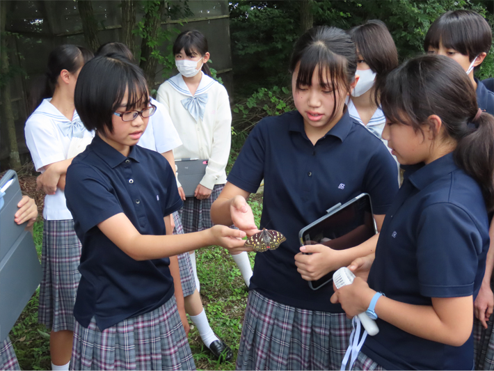 伝統ある大妻学院のスピリットを受け継ぐ同校の建学の精神は「学芸を修めて人類のために〜Arts for Humankind〜」、そしてスローガンは「らしくあれ〜自分らしく、まっすぐに。〜」です。比企丘陵の一角にある同校は、圧倒的な自然に恵まれた環境のなか、「社会でできる人」を育てる教育を展開しています。そのために、「探究する力」「表現する力」「感じる力」「自ら学ぶ力」の育成を目指しますが、中1で国蝶・オオムラサキの観察&飼育を実施するなど、とくに「サイエンス」と「グローバル」教育に力を入れながら、社会貢献活動も積極的に実施しています。2024年から「適性検査型入試」を行っています。そこに込める思いを、校長の榎本克哉先生に伺いました。